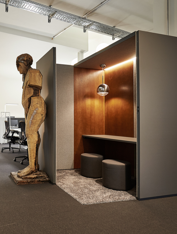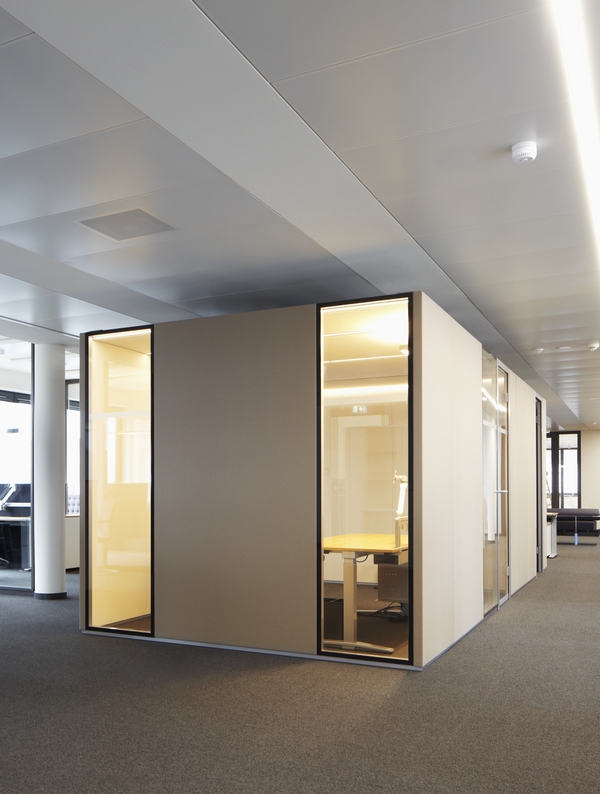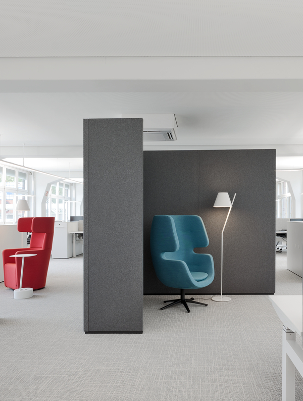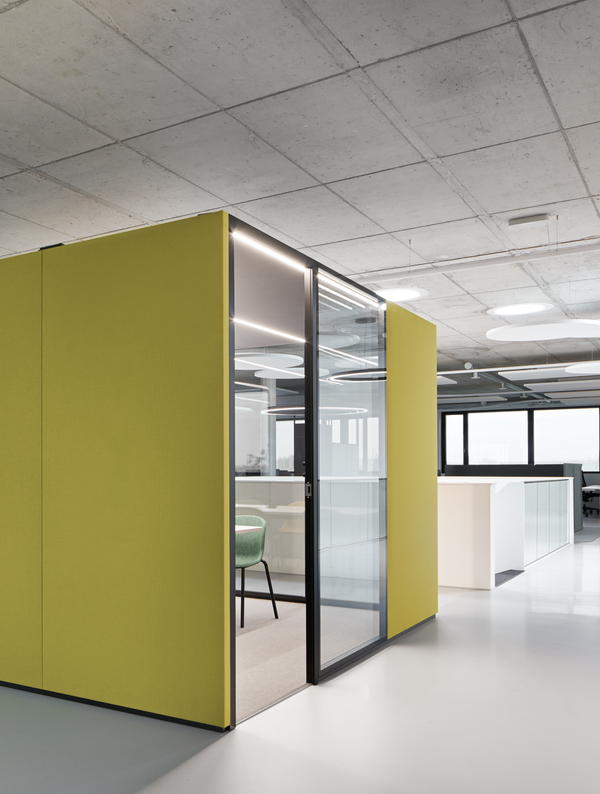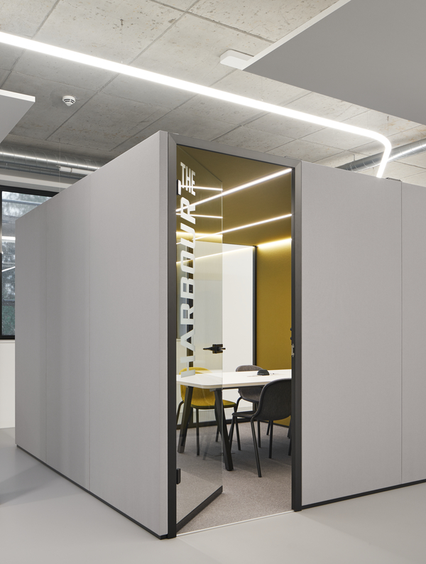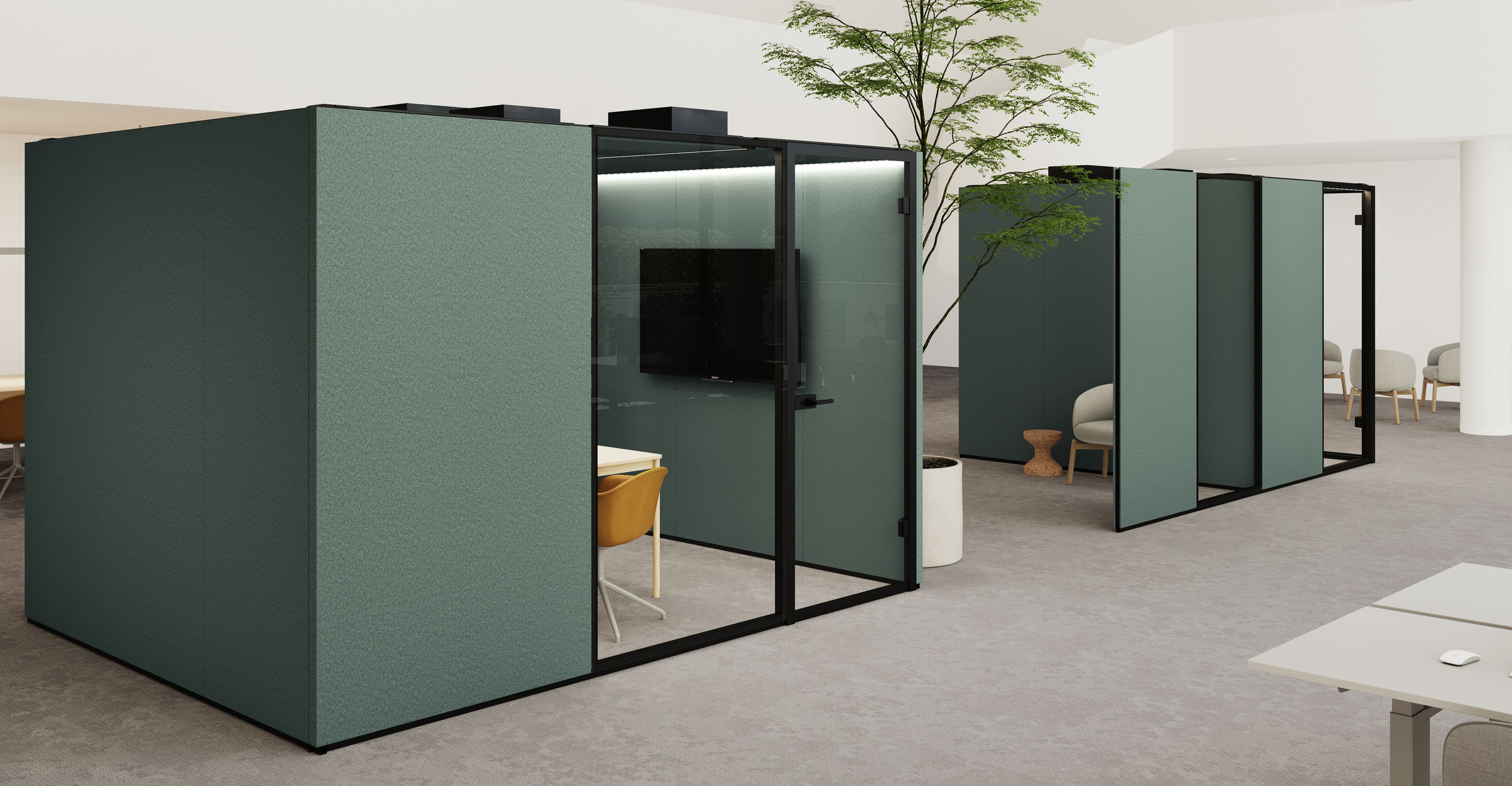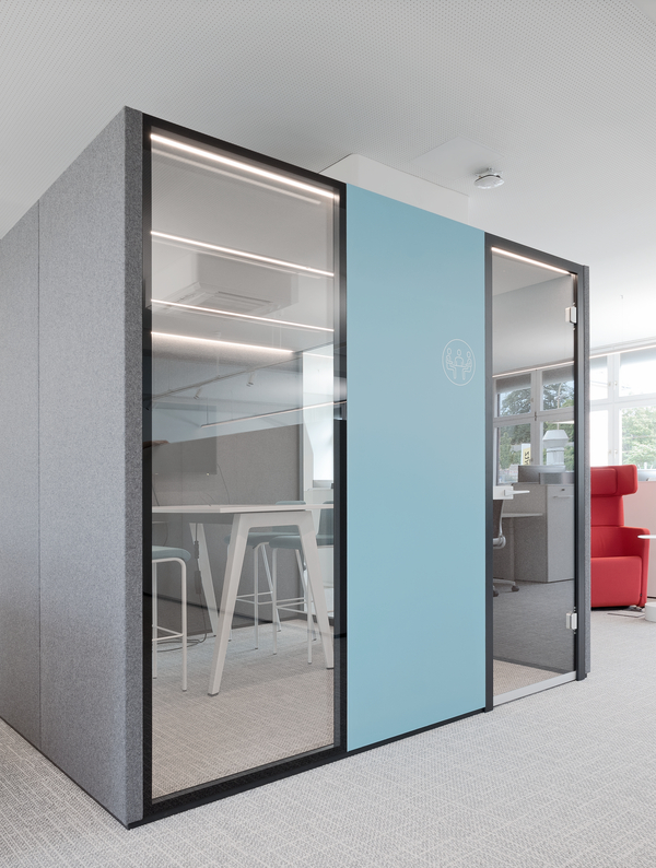 Mit einer großen Auswahl an Modulen, Oberflächen, Verbindungen und Farben ist auch der ästhetische Wert herausragend und trägt zu einer großen Vielfalt an Raum-in-Raum-Lösungen für ungestörte Gespräche, ruhiges Arbeiten und entspannte Besprechungen bei. Zusätzlich zu diesen offensichtlichen Vorteilen fungieren die Acoustic Rooms, ohne feste Verankerung am Boden, als wirksame Schallabsorber, die bei gezielter Platzierung innerhalb der Bürofläche den Lärm im Raum reduzieren. Allein deshalb können Acoustic Rooms-Lösungen einen entscheidenden Beitrag zur akustischen Gestaltung leisten.