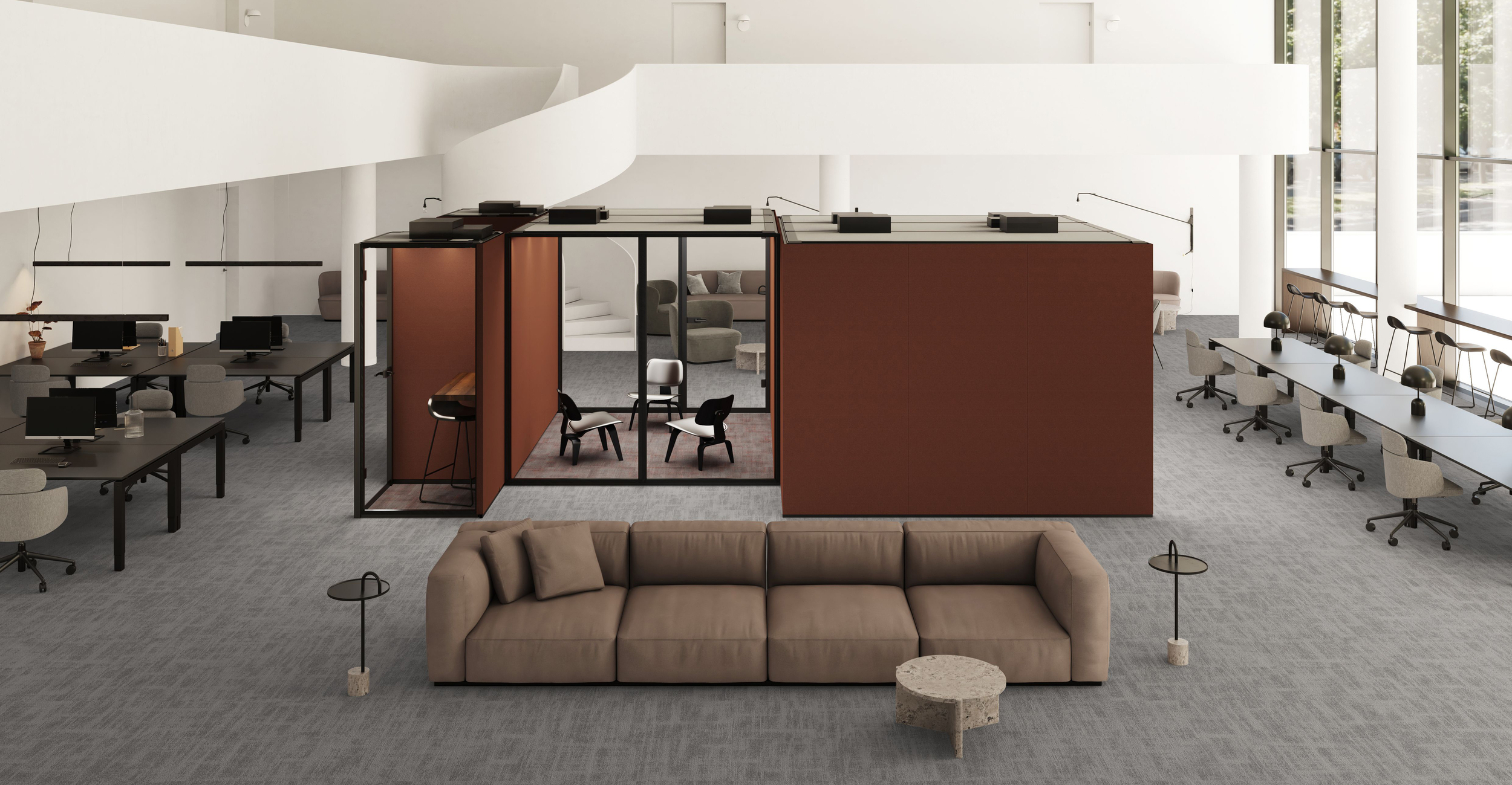 Unsere Serien Acoustic Rooms Modular und Acoustic Rooms Set umfassen schallabsorbierende und schalldämmende Designelemente, die alle sorgfältig entwickelt wurden, um eine neue Ära von Raumkonzepten einzuleiten. Diese akustisch optimierte, exklusive Auswahl bietet zahlreiche Einsatzmöglichkeiten in Form von eigenständigen Arbeitsbereichen, Konferenzräumen oder Besprechungszonen in Großraumbüros.