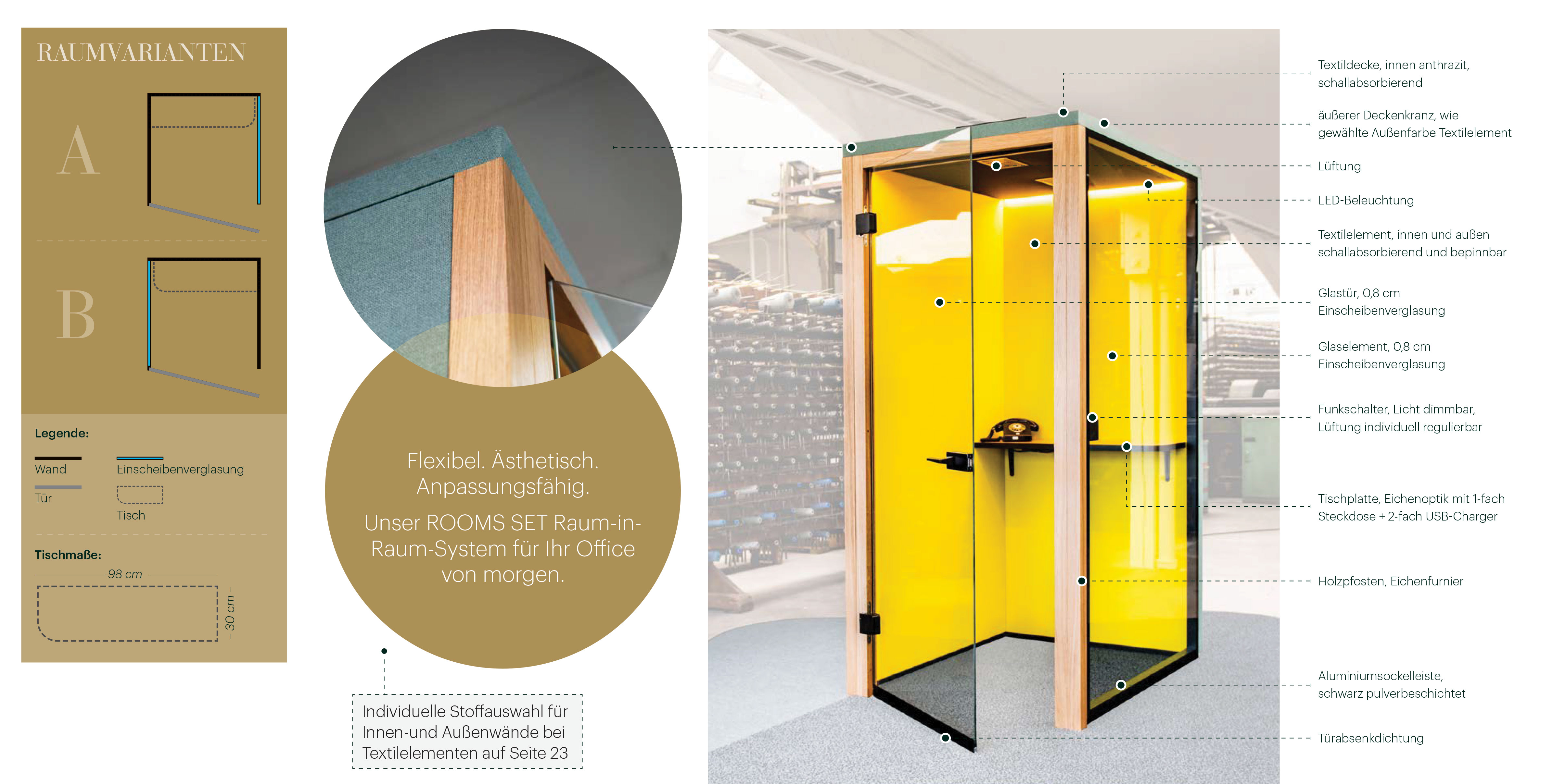 | Schallabsorption: | Wandelement: aw= 0,5 |