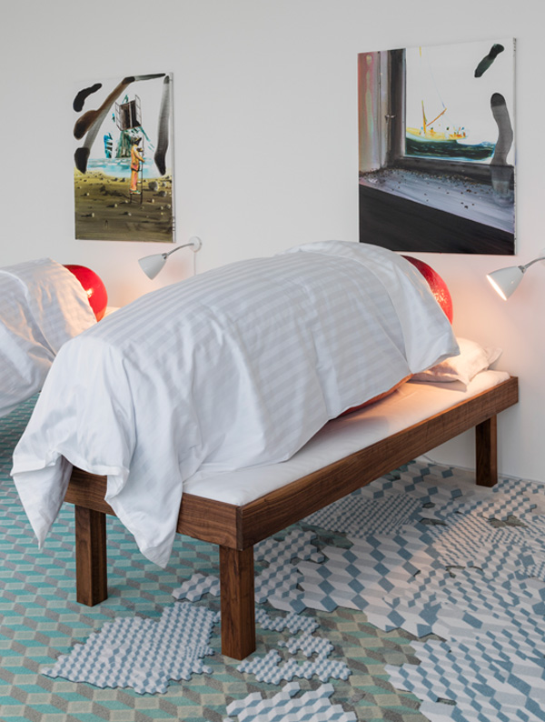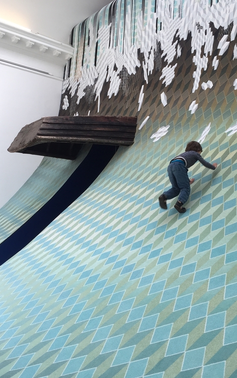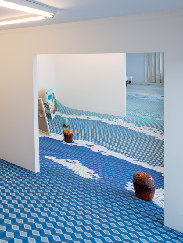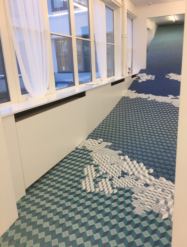 Das Werk 'Tsunami' des Künstlers John Kørners entstand in Zusammenarbeit mit ege®. ‘Tsunami‘ wurde an mehreren Orten ausgestellt: in der Victoria Miro Gallery in London, im HEART Herning Museum of Contemporary Art, Dänemark und zuletzt im J. F. Willumsens Museum in Frederikssund, Dänemark. Die Kunstinstallation besteht aus einem Teppichboden in Blau- und Grüntönen, der in Wellenform 15 Meter auf dem Boden und anschließend bis zu 4,5 Meter hoch an der Wand entlang verläuft. John Kørner ist er Auffassung, dass Teppichboden ein einzigartiges Material ist und ein Potential birgt, das insbesondere in großformatigen Ausstellungen zur Geltung kommt. Er ist der Meinung dass im szenografischen Bereich, in dem der Boden als Fläche oft vernachlässigt wird, von Teppichboden eine enorme Wirkung ausgehen kann.