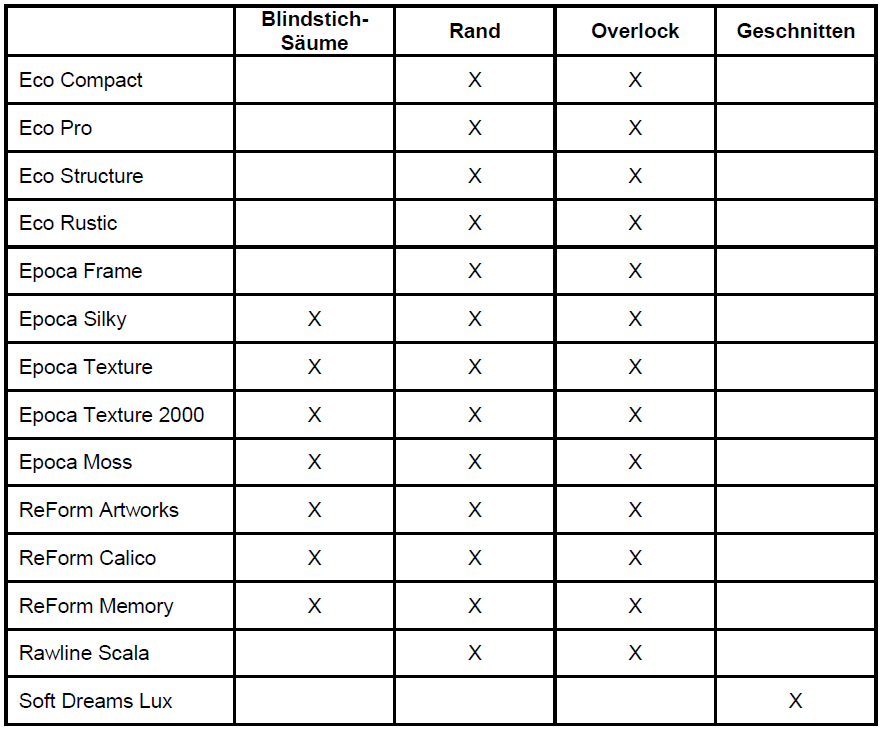 Vier Optionen stehen zur Auswahl: Overlock, Rand, Blindstich-Saum oder schlicht gekettelt.