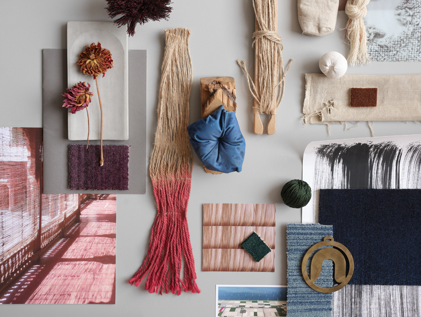 Canvas Collage stammt aus der Feder der niederländischen Designerin Nicolette Brunklaus. Ihre Liebe zu schweren Textilien ist unübersehbar. Die gewebte Struktur findet sich in vielen Variationen in der gesamten Kollektion wider, in lagenweise dargestellten Dahlien, in einem Patchwork von Farben und in Kombination mit neuen Formen.