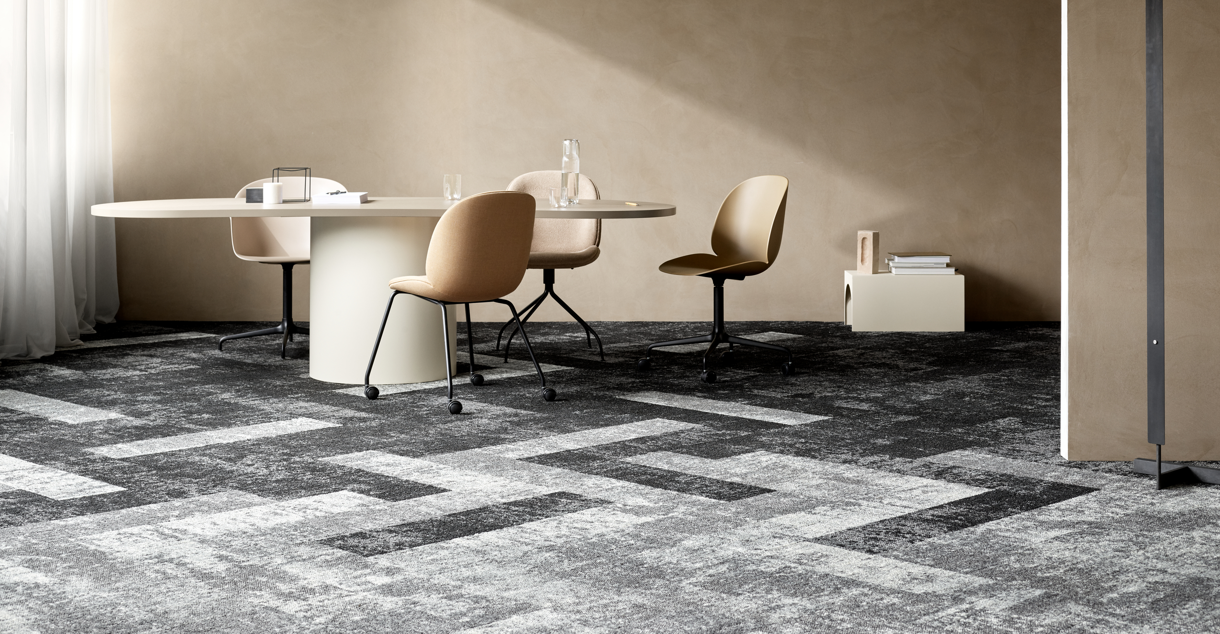 Die Teppichfliese Construction besteht aus regenerierten und regenerierbaren ECONYL® Garnen und ist zudem mit unserem patentierten Ecotrust-Rücken ausgestattet. Die Kollektion ist Cradle-to-Cradle zertifiziert und eignet sich für jede Art von Räumen, in denen Ästhetik und Nachhaltigkeit gefragt sind – auch in stark frequentierten Büros.