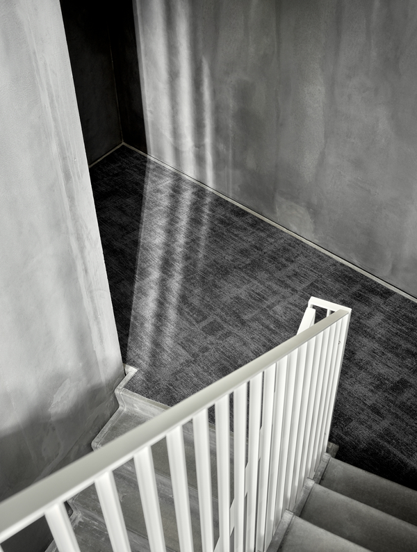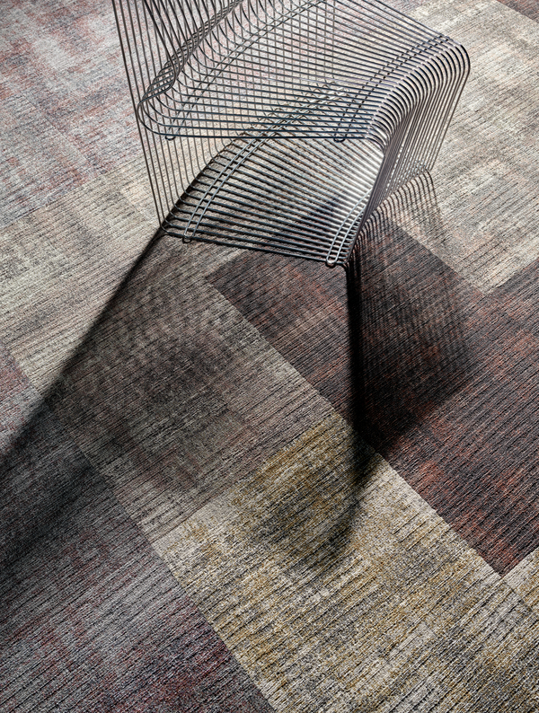 In der Kollektion Shadowplay erzeugt die mehrstufige Loop-Konstruktion eine skulpturale Textur, die durch den verzerrten Schatten und das Licht beeinflusst wird. Zwei aufeinander abgestimmte Muster, Umbra und Obscura, können allein oder zusammen verwendet werden, um vielschichtige Schatten zu komponieren, die über den Boden tanzen. Neutrale Ton-in-Ton-Farbgebungen werden durch Farbkonturen ergänzt, die abstrakte Formen nachzeichnen und leise verblassen